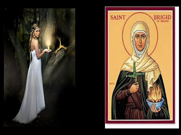 We have the goddess Brigid from the Celtic times who has been in a sensed transfigured into St Brigid, one of the three patron saints of Ireland to look after us.